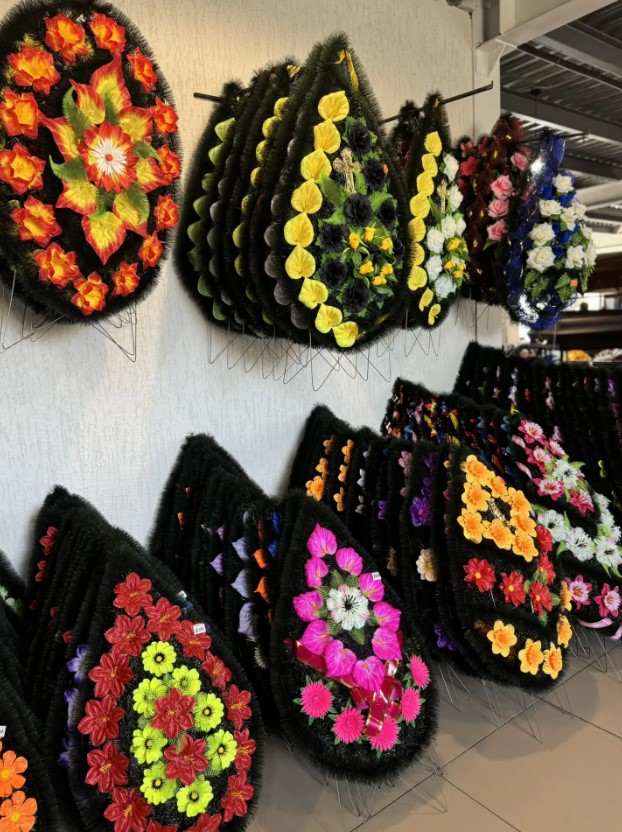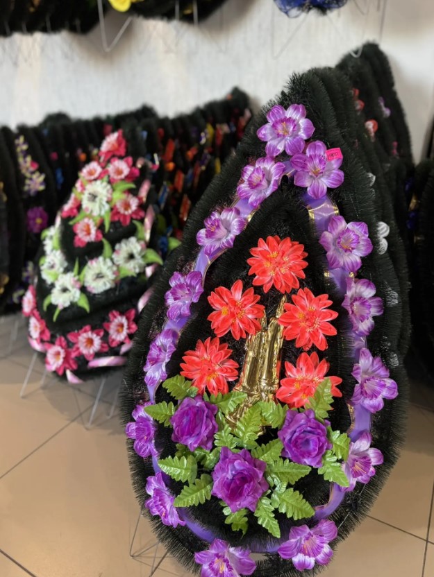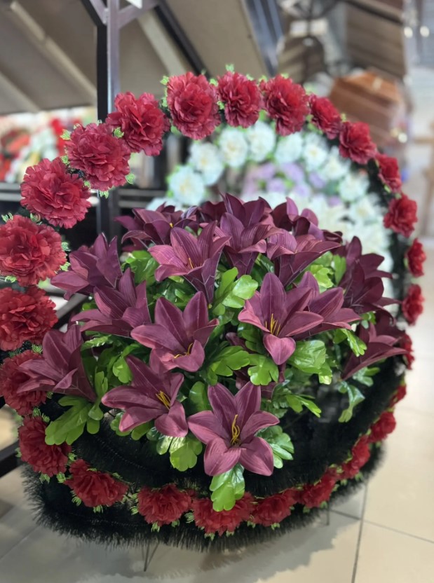 Мы предлагаем большой выбор венков и траурных корзин из искусственных цветов.