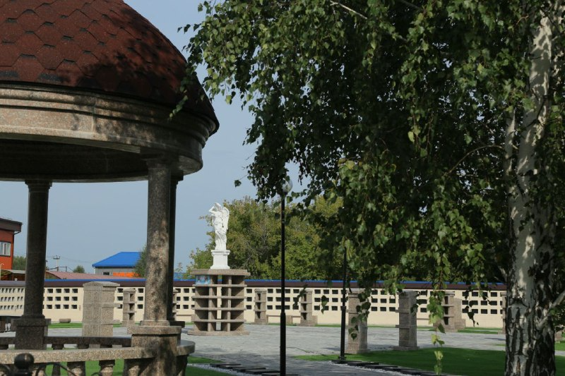 Сотрудники агентства ежедневно убирают территорию колумбария от травы, листьев и снега. Здесь чисто в любое время года.